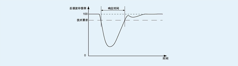 濾波裝置處于穩(wěn)態(tài)工作情況下,突然投入或切除負(fù)載諧波(或無功)電流,在濾波裝置的工作范圍內(nèi),總諧波補(bǔ)償率不能滿足技術(shù)要求的時(shí)間,如圖所示。